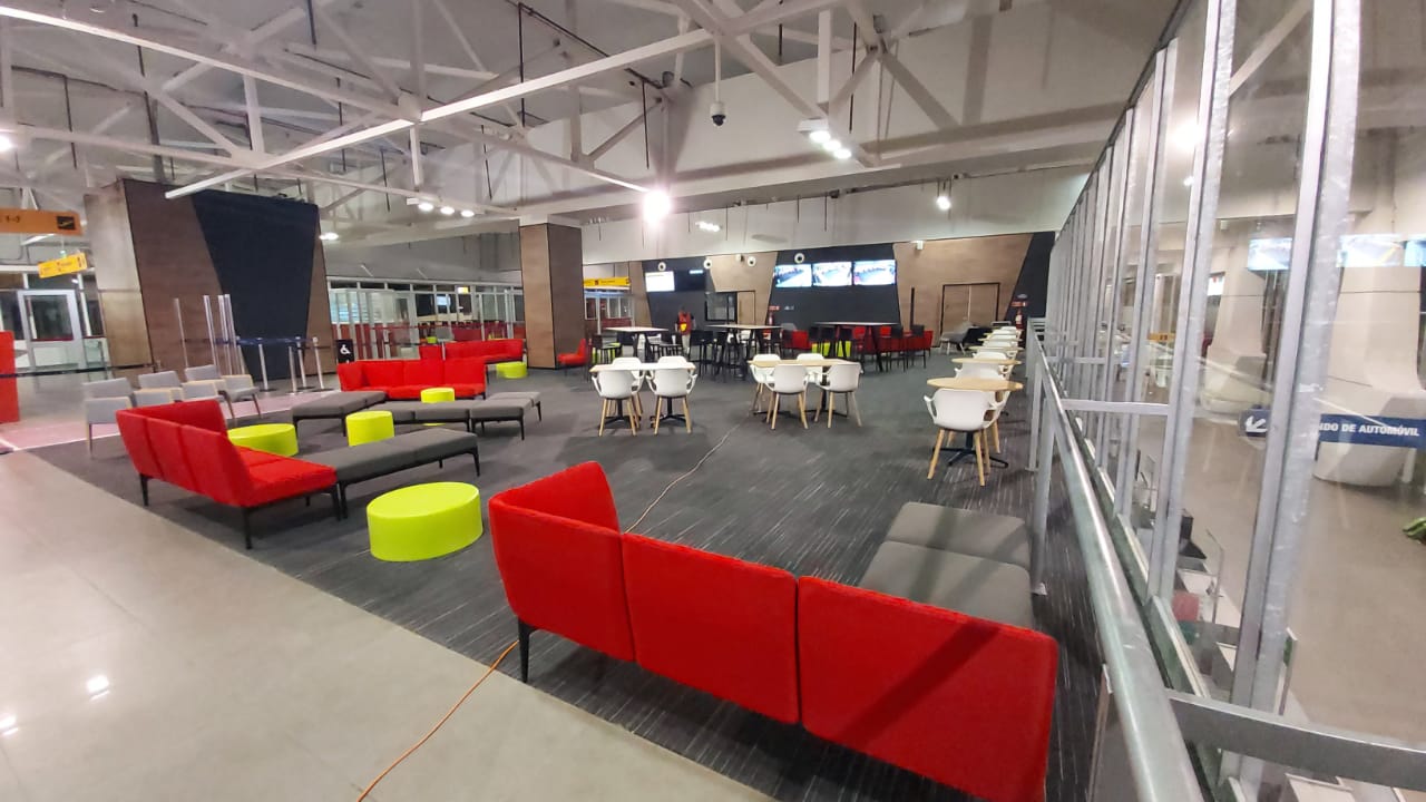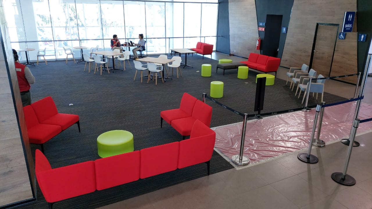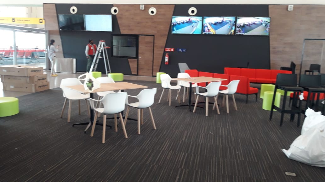 Diseño y construcción de espacio cowork en el Aeropuerto de Antofagasta, enfocado en funcionalidad y conectividad para viajeros y profesionales.